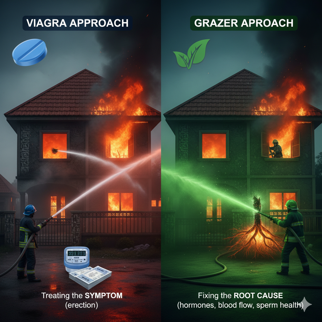 Viagra is like using duct tape to fix a broken engine. It works… temporarily. But the engine is still broken.